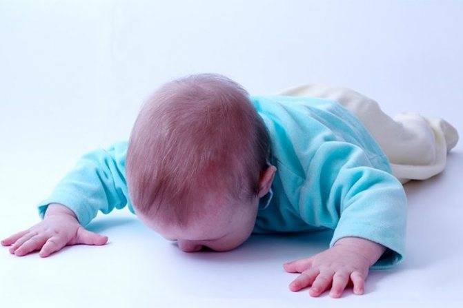 - Если малыш делает первые попытки ходьбы, то потеря равновесия часто приводит к падениям и ударам головой об пол или твёрдые предметы;