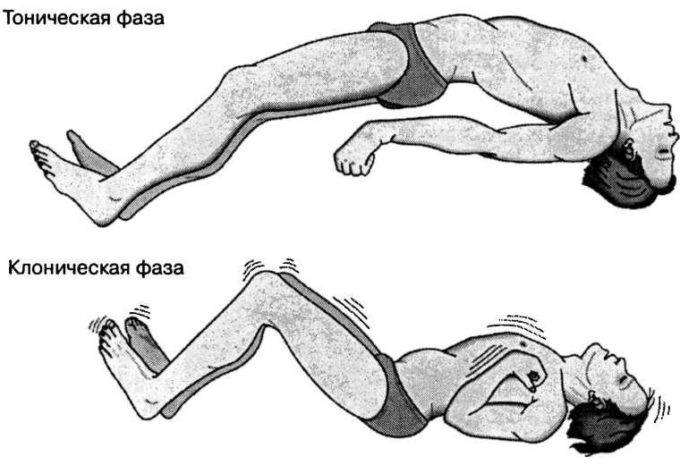 При эпилептическом судорожном синдроме приступ занимает около минуты, сознание у пациента чаще всего отсутствует. Судороги ритмичные, симметричные, чаще всего тонического, тонико-клонического или миоклонического характера.
