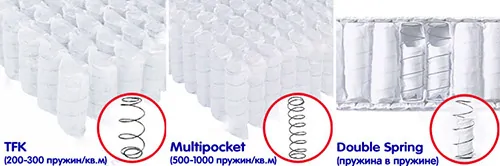 Ортопедические матрасы с независимыми блоками подразделяются также по степеням жесткости; она может быть высокой, средней и мягкой. Участки различной жесткости могут присутствовать и в одном матрасе.