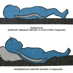 Мягкие покрытия или приспособления с независимыми пружинными блоками ортопеды рекомендуют при остеохондрозе в пояснично-кресцовой области (особенно, если развивается сглаженность лордоза, и беспокоят боли). Если остеохондроз сочетается с межпозвонковыми выпячиваниями (грыжами), идеальным выбором станет 2-сторонний матрас с разной жесткостью поверхностей; в период ремиссии используется более упругая, а во время обострения – мягкая.