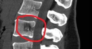 - Через эту трещину в позвонок вводится цементирующее вещество.