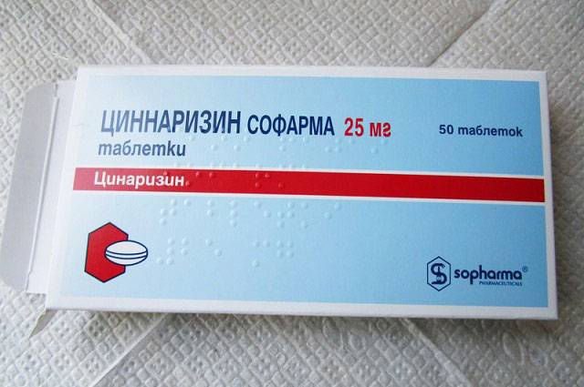 Циннаризин — антигистаминный препарат избирательно действует на сосуды, расширяет просвет их стенок, нормализует кровообращение, снижает вязкость крови, помогает при головокружении. Возможен тремор конечностей как побочный эффект.