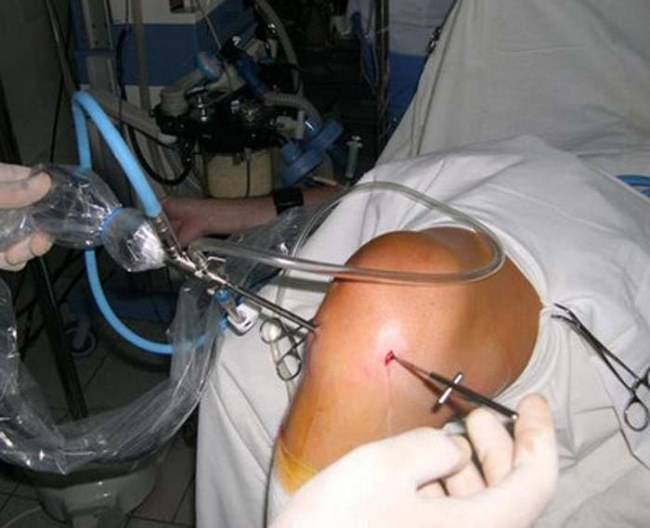 Хирургическое вмешательство. Шов мениска выполняется в наружной зоне, хорошо снабжающейся кровью и способной к регенерации. Операцию делают при свежей травме, не позднее 10 дней в случае продольного разрыва мениска. После вмешательства требуется длительный восстановительный период. Пациента ограничивают в движении на полгода, предписывают пользование костылями 8 месяцев. Артроскопическая резекция (менискэктомия). Операция заключается в полной замене поврежденного мениска или удалении поврежденных тканей. С помощью артроскопа через микро разрезы в полость сустава вводят хирургические инструменты и мини видеокамеру, позволяющую хирургу осмотреть сустав изнутри. Имплантацию мениска делают в молодом возрасте, на суставе, не имеющем признаков разрушения. Этот метод дает хорошие результаты, служит профилактикой артроза.